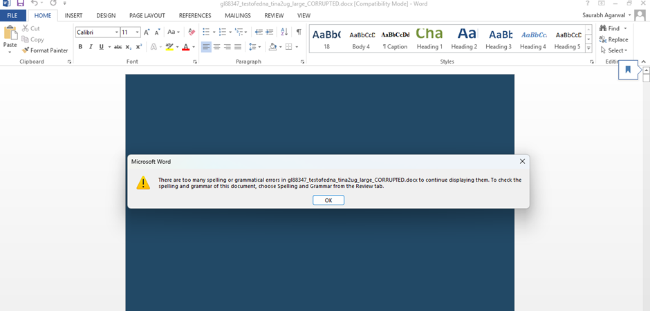 Is there any properties or method to check the spelling and grammatical error or or corrupted data in word file?